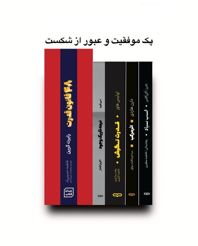 توضیحات هر کتاب درج شده کتاب “۴۸ قانون قدرت” از بهترین منابع برای یادگیری اصول قدرت و نفوذ است. که ما نشان میدهد که چگونه میتوان با استفاده از قوانین قدرت، نفوذ بیشتری در زندگی و روابط خود به دست آوریم. فواید و تأثیرات این کتاب: فزایش آگاهی دربارهی قدرت 2. بهبود مهارتهای رهبری 3. تقویت تواناییهای استراتژیک 4. شناخت و پیشگیری از دامهای قدرت 5. توسعه روابط اجتماعی — کتاب “اثر مرکب” یکی از بهترین منابع برای فهمیدن اصول موفقیت و تأثیر اقدامهای کوچک در زندگی است. این کتاب میگوید که چگونه تغییرات کوچک و مداوم میتوانند به نتایج بزرگ و موفقیتهای بلندمدت منجر شوند. فواید و تأثیرات : 1. بهبود عادتها 2. پیشرفت مداوم 3. مدیریت زمان و انرژی 4. تقویت انگیزه و اراده 5. بهبود روابط 6. برنامهریزی برای موفقیت 7. اهمیت کوچکترین اقدامها 8. چگونگی ایجاد تحول در زندگی — کتاب “قدرت نگرش” یکی از بهترین منابع برای فهمیدن اهمیت و تأثیر نگرش مثبت در زندگی است. این کتاب به ما نشان میدهد که چگونه نگرش مثبت میتواند کیفیت زندگی را بهبود بخشد و ما را به اهدافمان نزدیکتر کند. فواید و تأثیرات : فزایش اعتماد به نفس 2. بهبود روابط اجتماعی 3. تقویت سلامت جسمی و روانی 4. افزایش بهرهوری 5. مقابله با چالشها 6. ایجاد انگیزه و اراده 7. بهبود کیفیت زندگی 8. کاهش استرس و اضطراب — کتاب “نیمه تاریکی وجود” یکی از بهترین منابع برای درک و مواجهه با جنبههای تاریک شخصیت انسان است. این کتاب به ما نشان میدهد که چگونه میتوان با شناخت و پذیرش نیمه تاریک خود، به رشد و تکامل شخصیتی دست یافت. فواید و تأثیرات : 1. شناخت نیمه تاریک وجود 2. پذیرش خود 3. بهبود رشد شخصیتی 4. افزایش همدلی و تفاهم با دیگران 5. تقویت سلامت روان — کتاب “اسب سیاه” از بهترین منابع برای فهمیدن اهمیت و قدرت استعدادهای نهفته و ناشناخته در زندگی است. که به ما نشان میدهد که چگونه میتوان با استفاده از استعدادهای منحصر به فرد و تلاش مداوم به موفقیتهای بزرگ دست یافت. فواید و تأثیرات : 1. کشف استعدادهای نهفته 2. تشویق به پذیرش تفاوتها 3. افزایش انگیزه برای تلاش مداوم 4. تقویت اعتماد به نفس 5. بهبود روشهای یادگیری 6. شناخت و بهرهبرداری از نقاط قوت فردی 7. افزایش انعطافپذیری در مواجهه با چالشها