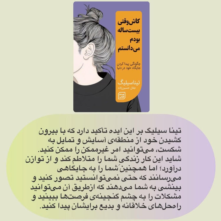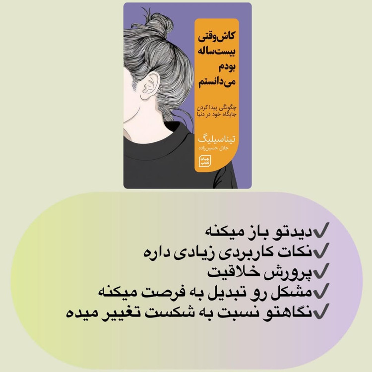ورق بزن تا با کتاب بیشتر آشنا بشی کتاب کاش وقتی بیست ساله بودم میدانستم خوانندههایش در دنیا را به تجسم دوبارهی آیندهشان تشویق میکند نسخهی بازبینیشده و بهروزشده حاوی مطالب تازهای است. داستانهای این کتاب که از دل کلاسهای درس در استنفورد و تجارب زندگی شخصی و شغلی نویسنده برآمده، ماجرای زندگی افرادی را روایت میکند که شناختهها را رها کرده و به استقبال ناشناختهها رفتند و به طرز شگفتانگیزی بدترین موقعیتها را به فرصتهای سازنده تبدیل کردند. تینا سیلیگ بر این ایده تأکید دارد که با بیرون کشیدن خود از منطقهی آسایش و تمایل به شکست، میتوانید امر غیرممکن را ممکن کنید. شاید این کار زندگیِ شما را متلاطم کند و از توازن درآورد؛ اما همچنین شما را به جایگاهی میرسانند که حتی نمیتوانستید تصور کنید و بینشی به شما میدهند که ازطریق آن میتوانید مشکلات را به چشم گنجینهی فرصتها ببینید و راهحلهای خلاقانه و بدیع برایشان پیدا کنید.